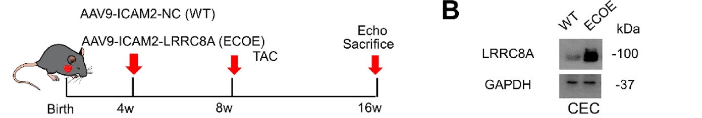 临床证据表明,压力负荷引起的心脏肥大与不良心脏结局密切相关。内皮功能障碍是心脏肥大和心力衰竭(HF)进展的关键因素,富含亮氨酸重复序列8A(LRRC8A)是血管内皮稳态的关键调节因子,但其在压力负荷引起的病理性肥大和功能障碍中的功能作用仍不清楚。近期厦门大学附属心血管病医院张雁惠/揭领军/潘磊/李桂阳联合温州医科大学附属第二医院李磊团队在Angiogenesis (IF 9.2)上发表文章“Endothelial LRRC8A mitigates pressure overload-induced cardiac hypertrophy by promoting coronary angiogenesis”,发现内皮LRRC8A是压力负荷引起的肥厚心脏中冠状血管生成的关键调节因子,并表明它可以作为心脏肥大和心力衰竭的治疗靶点。